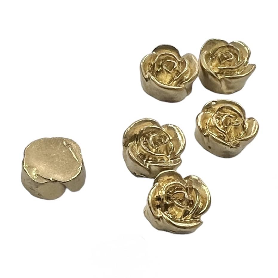 Flor plana de plástico pintada en dorado con un tamaño de 8mm.