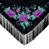 El mantoncillo de flamenca bordado de madroños negro un complemento artesanal realizado a mano en Sevilla. Con su diseño de flores bordadas, madroños de pico y tejido de calidad, es el accesorio ideal para completar tu traje de flamenca con estilo y distinción.