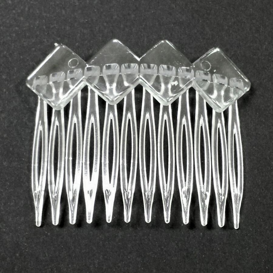 Peinecillo de plástico transparente, tamaño 7,5x5cm y base en zig-zag de 2cm/rombo.