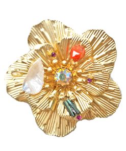 R03/5171 – Preciosos pendientes de mujer fabricados en acero inoxidable. Se tratan de unos pendientes dorados diseñados en forma de flor y ajustados a la oreja. Presentan decoraciones con pequeños cristales y pequeñas piedras nacaradas. Constan de cierre a presión.