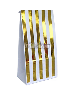 Bolsa Papel Color Blanco Rayas Doradas 12 x 7 Cm X 24cm x10 Unidades