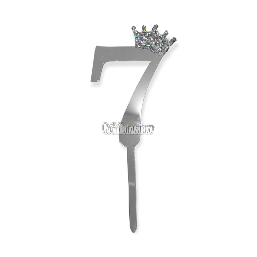 Topper para Torta Plateado “Nº7” Con Corona 11cm